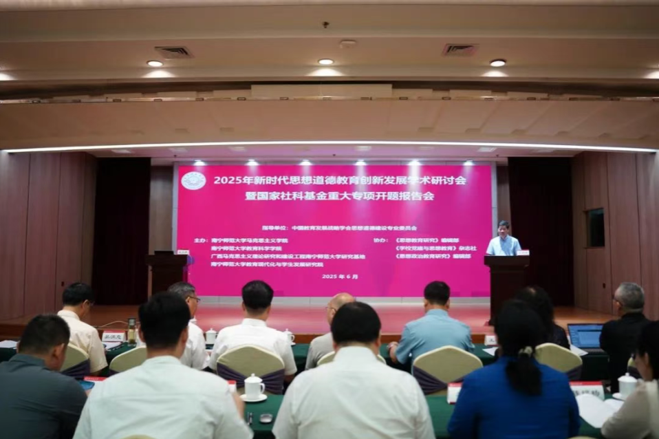 为进一步贯彻落实《新时代职业道德建设实施纲要》精神,推进新时代思想道德教育创新发展,探讨思想道德教育面临的新情况、新问题和新挑战,深化思想道德教育内容、方法、载体、评价研究,由中国教育发展战略学会思想道德建设专业委员会指导,必赢3003no1线路检测中心,必赢线路检测3003、必赢3003no1线路检测中心教育科学学院、广西马克思主义理论研究和建设工程必赢3003no1线路检测中心研究基地、必赢3003no1线路检测中心教育现代化与学生发展研究院联合主办,《思想教育研究》编辑部、《学校党建与思想教育》编辑部、《思想政治教育研究》编辑部共同协办的“新时代思想道德教育创新发展”学术研讨会于2025年6月14日在南宁成功举办。来自全国110多所高校的近140名专家学者、老师和研究生参加本次会议。本次研讨会设置了开幕式和主题报告以及两个单元的专家主旨报告,同时还特别设置了两个研究生分论坛。
