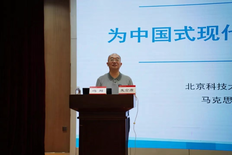 在主题报告环节,中国教育发展战略学会副会长兼思想道德建设专业委员会理事长、北京科技大学思想政治工作研究院院长、博士生导师冯刚教授作了以“为中国式现代化注入强大道德力量”为题的主题报告。冯教授指出,推进中国式现代化必须高度重视道德建设,通过提升职业道德建设科学化、规范化、制度化水平,引导各行业各领域弘扬新风正气,以优良行风带民风、促社风,为以中国式现代化全面推进强国建设、民族复兴伟业注入强大道德力量。冯刚教授还指出,开展思想政治教育研究,除了研究学校思想政治工作,还需研究企业思想政治工作、农村思想政治工作、机关思想政治工作、社区思想政治工作以及网络思想政治工作。思想政治教育学科的发展,需要依靠基础理论的不断完善建构。基础理论来源于三个方面:一是学科理论本身的发展;二是实践的理论升华;三是相关学科领域研究方法的借鉴和交叉学科研究。冯刚教授对当前的思想道德教育现状,从意义、内涵和路径提出了自己的深刻见解,既有理论高度,又有现实关照,引起与会者的共鸣。