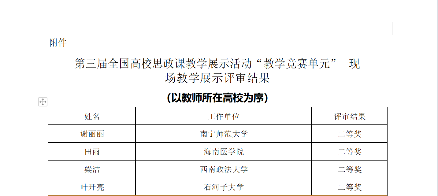 近日,教育部公布第三届全国高校思想政治理论课教学展示活动“教学竞赛单元”评审结果,我校必赢3003no1线路检测中心谢丽丽副教授喜获二等奖。