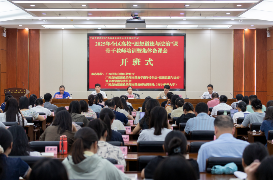 8月25日下午,2025年全区高校“思想道德与法治”课骨干教师培训暨集体备课会在广西干部学院正式开班。本次培训由自治区教育厅主办,广西高校思想政治理论课教学指导委员会“思想道德与法治”课分教学指导委员会、广西高校思想政治理论课教师培训基地(必赢3003no1线路检测中心)和必赢3003no1线路检测中心,必赢线路检测3003共同承办,广西干部学院协办。