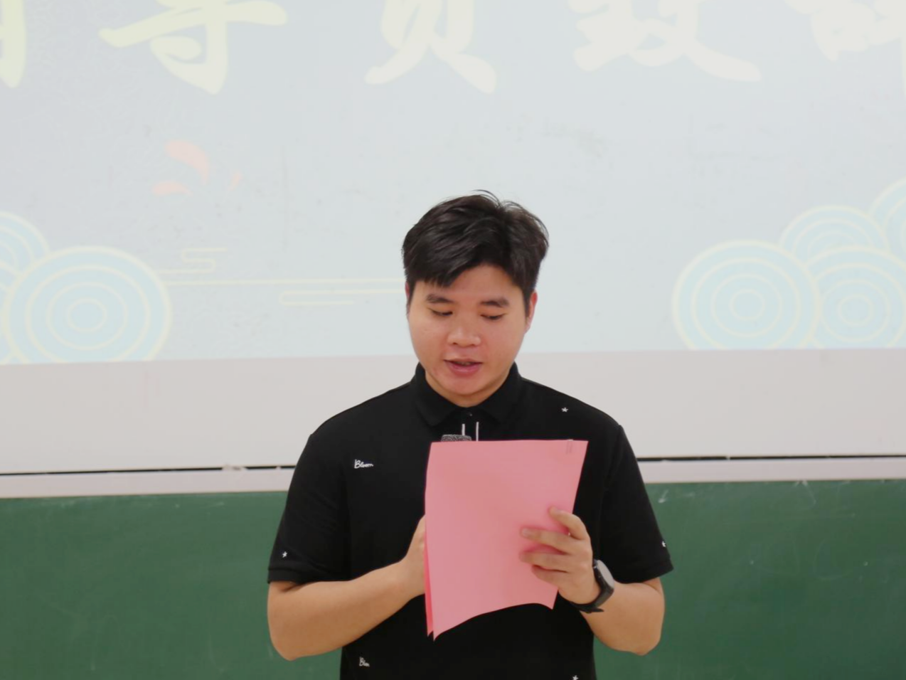 活动伊始,辅导员黄业毅发表致辞,他指出中国的诗文博大精深,是中华民族精神底蕴的重要组成部分,体现了中华民族传统的价值追求和审美理念,反映着自强不息、团结奋斗的高尚情怀。接着,主持人宣读比赛流程和评分标准后,大赛正式拉开序幕。在比赛过程中,选手们声情并茂地朗诵,将文字背后深厚的情感传递给观众。在互动环节中,观众们积极踊跃地参与答题,现场气氛轻松愉快。最后,兼职辅导员黄露丝对本次比赛作点评,她对选手们选取的比赛篇目、读音吐字和情感传递给予肯定和称赞,同时也指出选手们在诵读过程中的一些不足,要加强仪态和台风的训练,对诵读技巧、诵读韵律和诵读内容的情景把握有待提高。