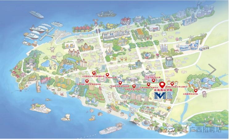 值得关注:绝佳地理位置与优厚福利:学校坐落于北海,毗邻广西北海滨海国家湿地公园,周边房地产配套完善,尽享便捷生活。更有北海顶尖中小学教育资源环绕,如:北海市海城区民附学校、北海市海城区第二十五小学、广西北海市北海中学、金玉国学幼儿园等,右邻广西工业学院,学术氛围浓厚。学校还贴心提供周转房,并有难得的邮轮上船体验,让您在工作之余感受独特的海上风情。