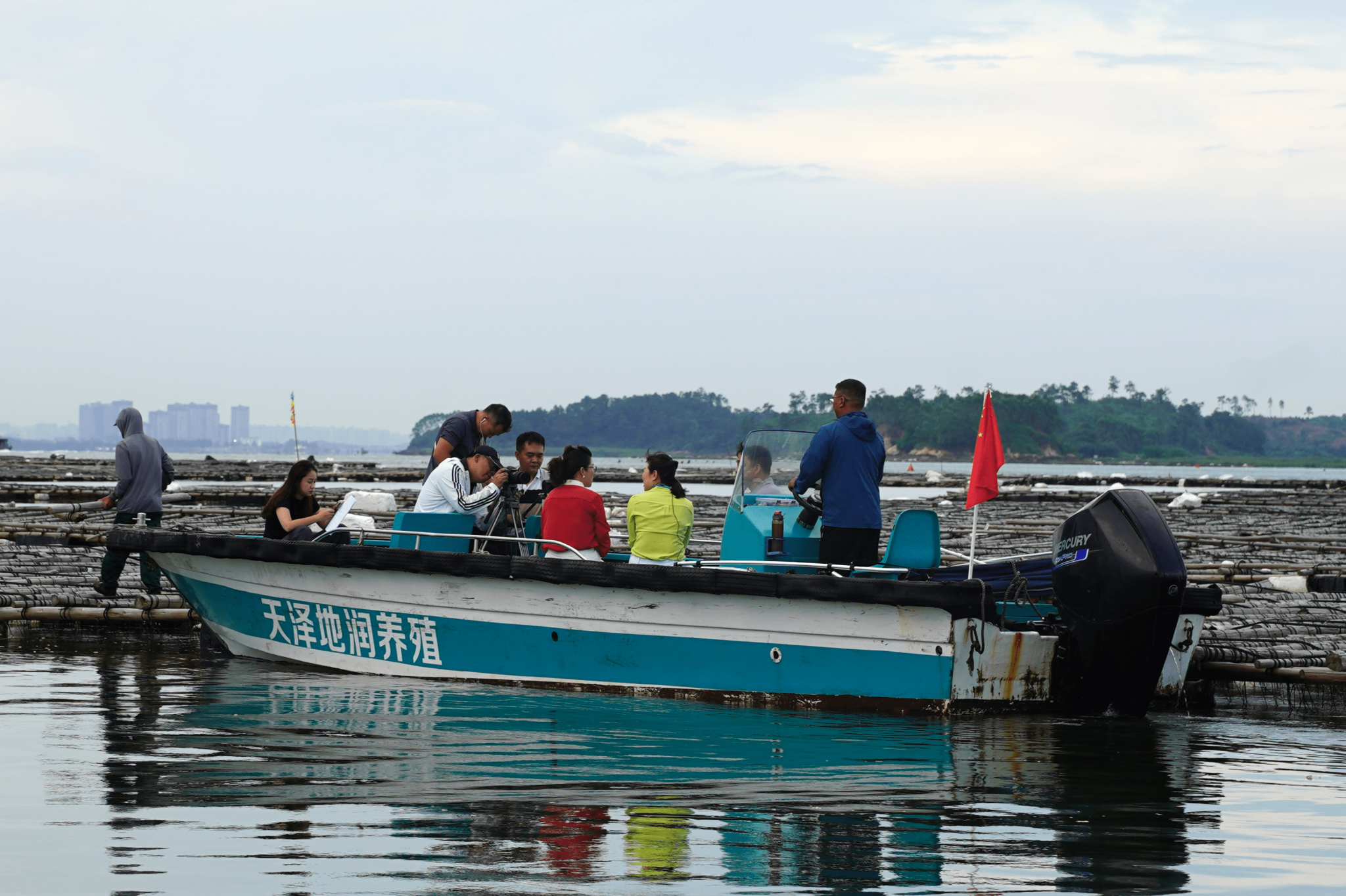 师生在防城港白龙珍珠湾海洋牧场示范区共同开展“海上思政课”